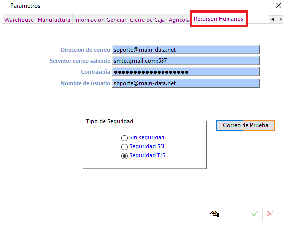 Existe una nueva pestaña en el Administración del sistema – Parámetros para el ingreso del correo que sirve par el envío del los roles por correo, puede ser el mismo correo de facturación u otro independente.